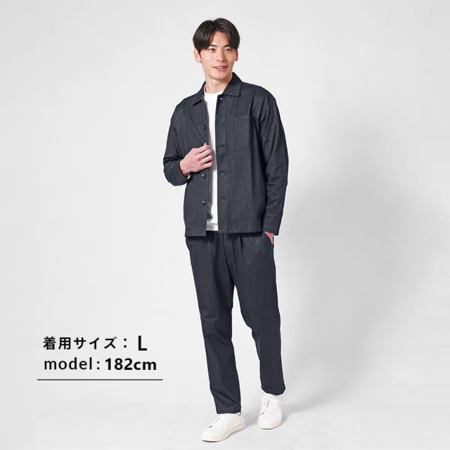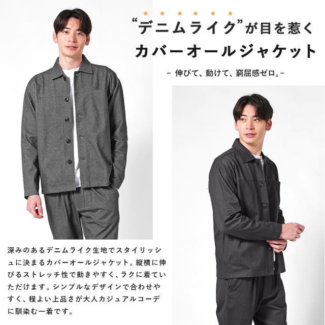 セットアップ メンズ 2点セット カバーオール ジャケット イージーパンツ デニムライク ストレッチ 軽い おしゃれ らくちん 洗える シンプル カジュアル 春 秋 きれいめ 男性 アーバンスクエア 35346 35347