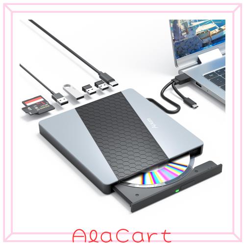 Alxum 8-IN-1 Type-C/USB 3.0 A CD DVDドライブ 外付け-CDレコ 超高速データ入出力 8X CD 24X SD/TFカードリーダー付き Windows/Desktop/