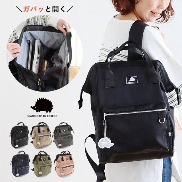 SCANDINAVIAN FOREST スカンジナビアンフォレスト リュック がま口 2way 撥水 ナイロン 1泊2日 11ポケット 肩 楽 軽い クッションパッド 背面ポケット A4 マザーズバッグ 1泊2日 北欧 通勤 通学 パティ