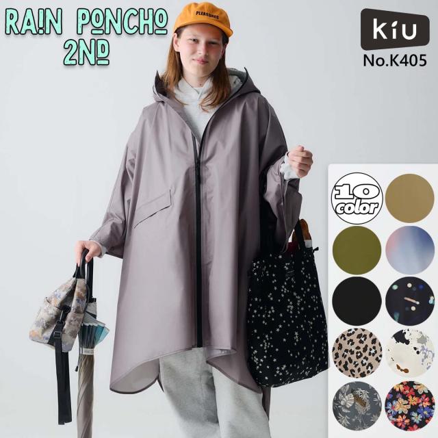 Kiu キウ レインコート レインポンチョ 2ND カッパ 合羽 自転車 雨具 フード付き 袖つきポンチョ フルジップ ポケット付き 通勤 通学 ユニセックス フェス キャンプ アウトドア 品番 K405 日本正規品