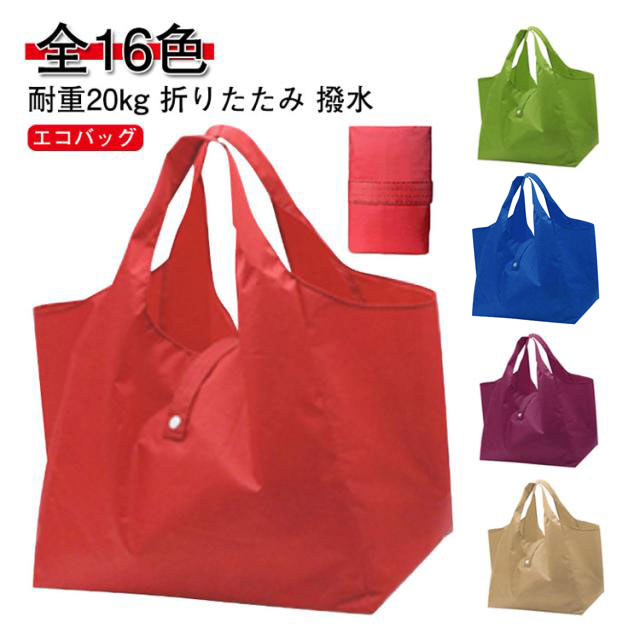 買い物袋 折りたたみ エコバッグ コンビニバッグ 袋 大容量 a4 耐重20kg マチ広 軽量 全16色 手提げ 洗える バッグ 折りたたみバッグ コンパクト トート 撥水 無地 ショッピングバッグ スーパー 八百屋 折りたたみバッグ 防水バッグ レッド ベージュ