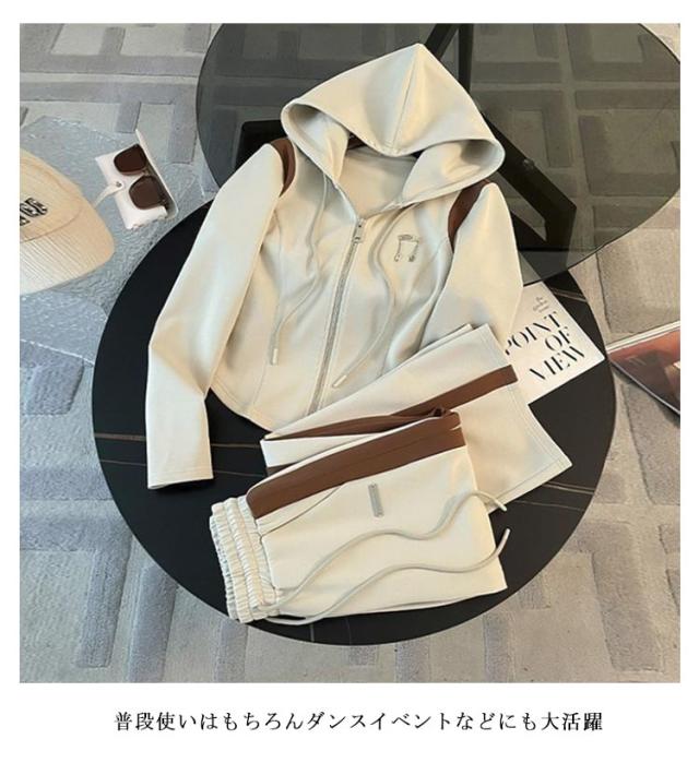 レディース ジャージ セットアップ スポーツウェア スウェット 着痩せ トレーニングウェア 長袖 ナイトウェア ロングパンツ 2点セット 寝巻き フード付き スエット ゆったり カジュアル パーカー スポーツウェア ジム 部屋着 パジャマ ダンス ストリート系 おしゃれ