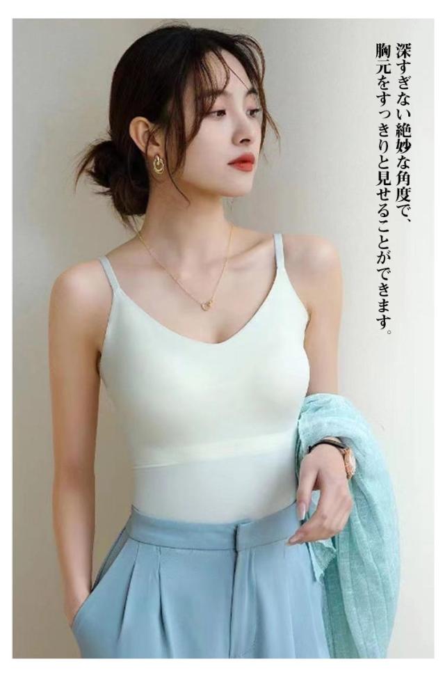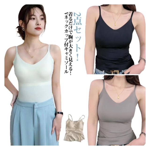 | 2点セット!着るだけで胸が大きく見える!Vネックカップ付キャミソール 伸縮性が抜群、締め付けのない程良いフィット感 深すぎない絶妙な角度で、胸元をすっきりと見せることができます。 | |