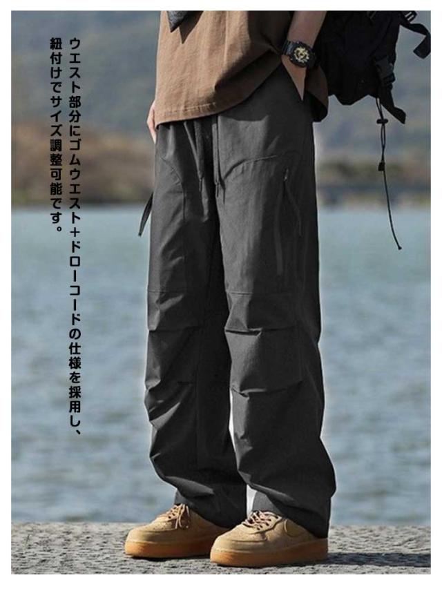メンズ ズボン ワイドパンツ 秋 ボトムス 春 ジャージ 通気性 ズボン 薄手 下 カーゴパンツ カジュアル ゆったり ウエストゴム 作業ズボン カジュアル 無地