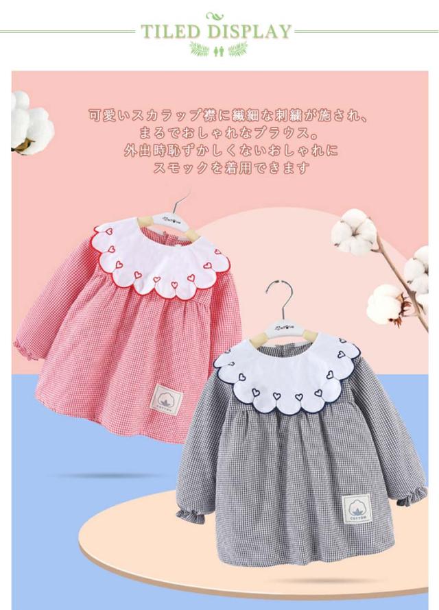 刺繍 スモック 長袖 スモックブラウス 袖付きエプロン お食事 女児 防水 チェック柄 ベビースモック 女の子 幼児 汚れ防止 絵画 工作用 外遊び 可愛い エプロン 秋冬 保育園 幼稚園 赤ちゃん ワンピース 防水エプロン 子供服 春 長袖 送料無料