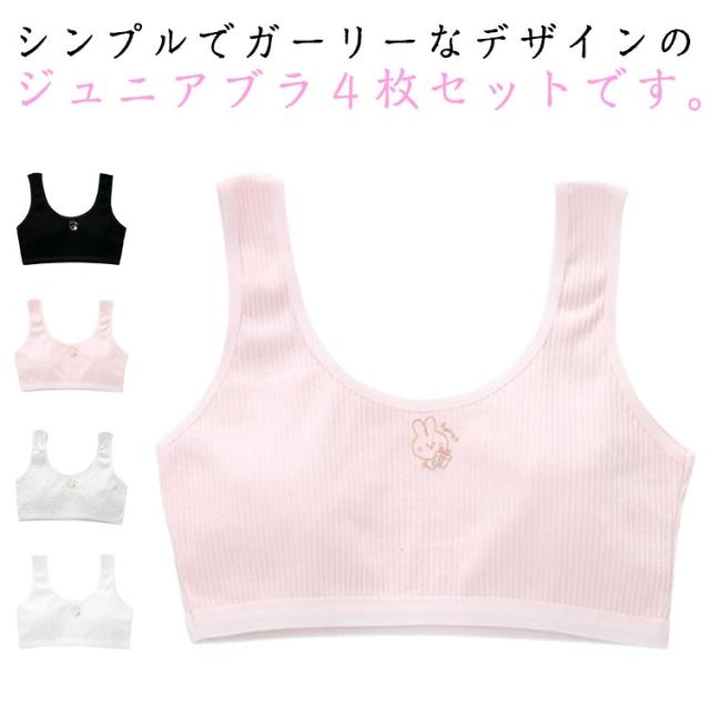 ジュニアブラ ノンワイヤー セット 4枚組 スポブラ ブラジャー インナー 女の子 キッズ 子供 下着 コットン ジュニアブラ キッズインナー やわらかい 小学生 中学生 子供