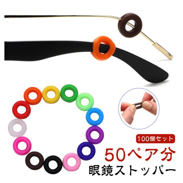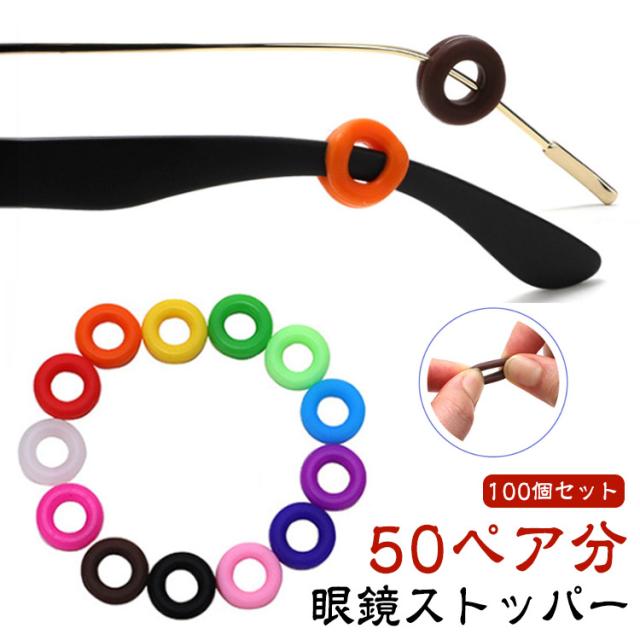 100個セット シリコン メガネストッパー 眼鏡ストッパー 50ペア分 めがね レディース ズレ防止 メンズ リング型 丸型 落下防止 メガネストッパー ユニセックス 男女兼用 サングラス PCメガネ用 眼鏡用品 かわいい 滑り止め