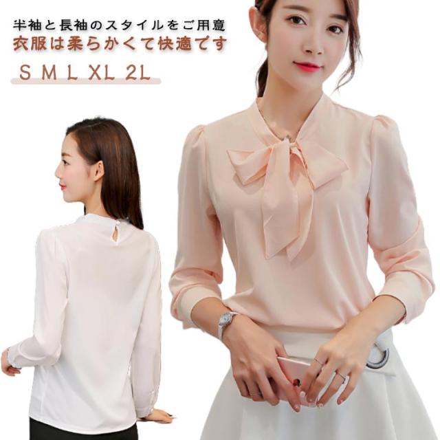 シフォンシャツ 半袖 ブラウス ブラウス 無地 長袖 シフォンシャツ リボン トップス シャツ リボン 春 シャツ リボンブラウス 半袖 シフォン シャツブラウス 可愛い フォーマル