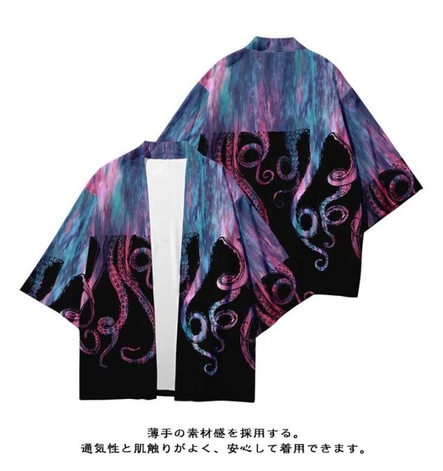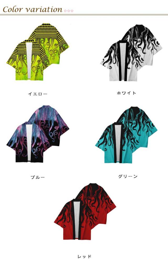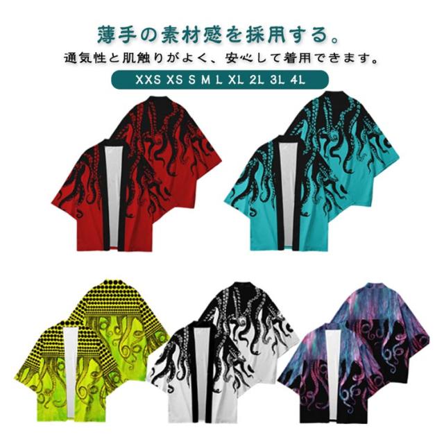 カーディガン 羽織 メンズ 和式パーカー 和柄 カーディガン 羽織り コート 和装 タコ柄 日焼け止め服 開襟シャツ UVカット 七分袖 春夏 夏祭り 冷房対策 紫外線防止 男女兼用 浴衣 花火大会 メンズ コスプレ お祭り 羽織物 舞台衣装 法被 甚平