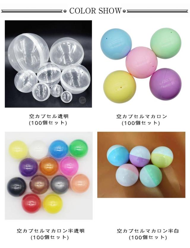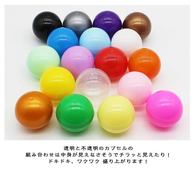 | 直径32MM 45MM 50MM 55MM 60MM 65MM 空カプセル100個入り! しっかりめ、小さいサイズ。 カプセルのみ。 透明カプセルと不透明カプセルの組み合わせ。 自由研究、くじやイベントに。 カラフルで豊富なカラーバリエーションは くじやお祭り、ビンゴ、イベントでも見映えが良いです☆ 透明と不透明のカプセルの組み合わせは中身が見えなさそうでチラッと見えたり!ドキドキ、ワクワク 盛り上がります! 景品などの小物を入れたり つかみどりやバスボム作りにも♪ | |