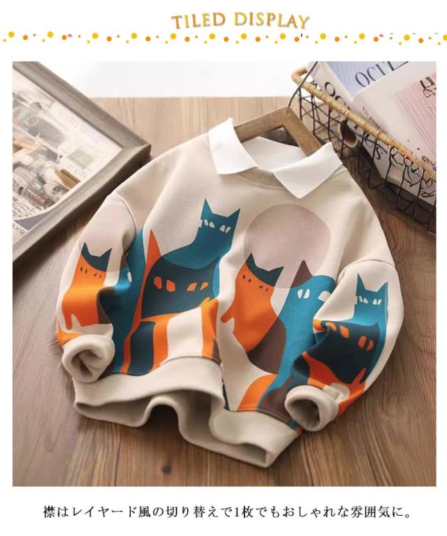 プルオーバー トレーナー 女の子 キッズ トップス レイヤード風 フェイクレイヤード 秋冬 襟付き 男の子 シャツブラウス 子ども 子供服 通園 通学 スウェット 重ね着 裏起毛 裏起毛なし パーカー トレーナー カジュアル おしゃれ トップス ギフト