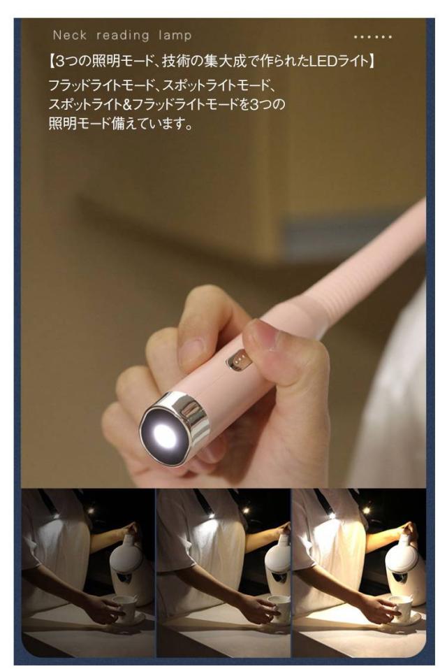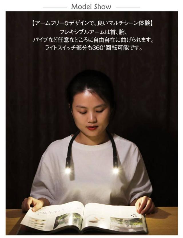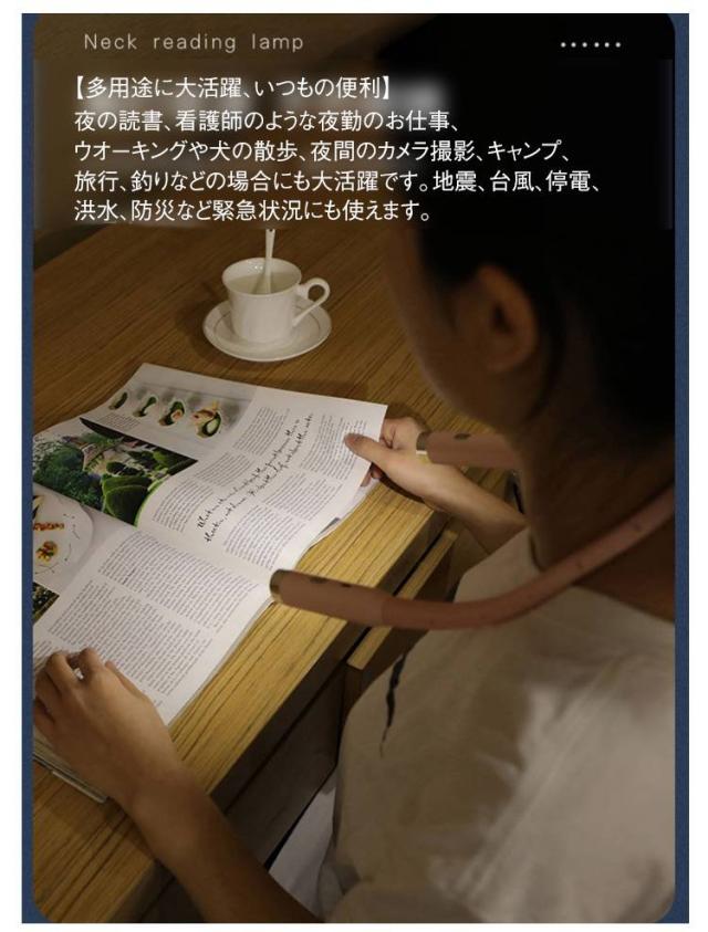 読書灯 ネックライト ネックライト ブックライト LED 角度調整 360度回転 首掛け式 三段階調光 防災用 アウトドア 登山 夜の読書 夜散歩 キャンプ 8時間連続使用可