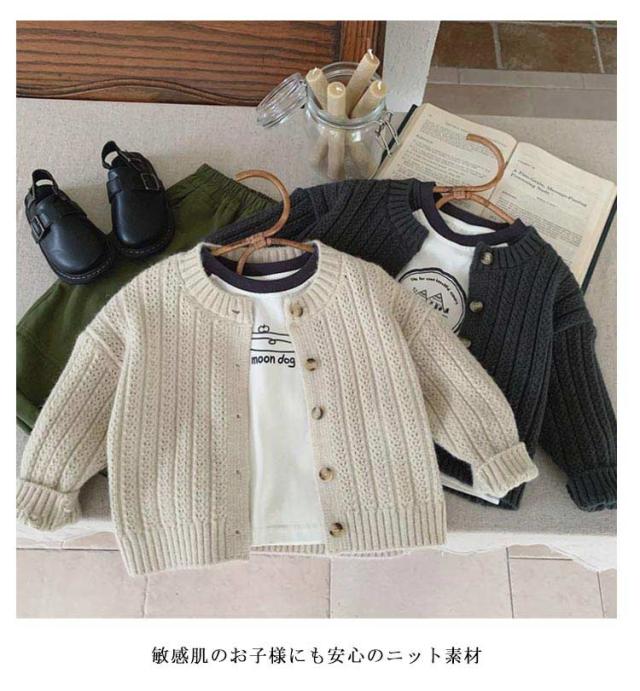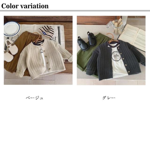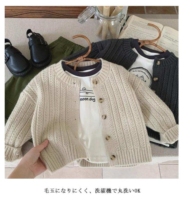 | 全2色!おしゃれなニットカーディガン 敏感肌のお子様にも安心のニット素材 毛玉になりにくく、洗濯機で丸洗いOK オールシーズン使えて1枚あると重宝します | |