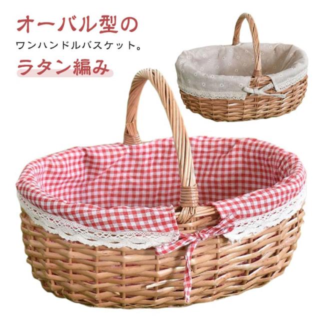 オーバル型 ラタン 編み ピクニック 大きい かごバッグ 蓋なし 収納バスケット 内布付き 持ち手 ラタンバスケット オーバル型 内布張り 籐かご 花見 収納ボックス 収納かご ワンハンドル 籠バッグ カゴバック 蓋なし 北欧 おしゃれ インテリア 雑貨