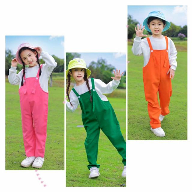 子供 子供 サロペット 学園祭 パンツ オーバーオール サロペット ダンス衣装 サロペットパンツ キッズ 演出服 学校活動 ダンス衣装 ロング丈 応援団 ダンスウエア 卒業式 写真撮影 記念写真 韓国子供服 無地