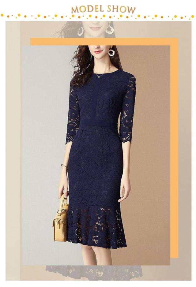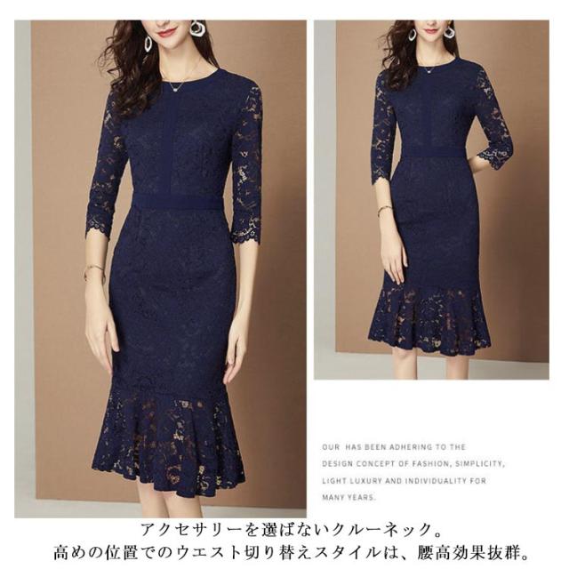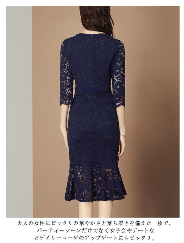 膝丈 パーティードレス ワンピース 総レース 5分袖 ミモレ丈 マーメイドライン レースマーメイドワンピース タイトワンピース 演奏会 大人 フォーマル レディース パーティドレス 謝恩会 成人式 同窓会 ドレス レース