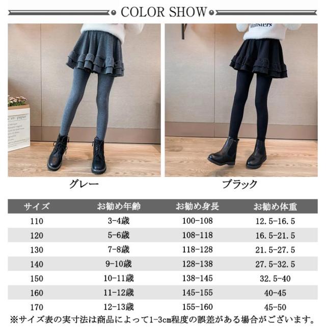 レギンス付きスカート キッズ プリーツスカート 防寒 ショートスカート 女の子 スカート ミニスカート ボトムス 140cm スカッツ 春 秋 冬 子ども 黒 ブラック グレー 130cm 160cm 150cm プリーツスカート 170cm