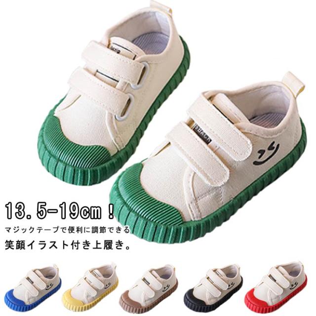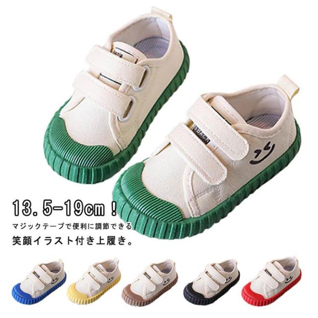 子ども 子供 マジックテープ ベビー 内履きズック 上履き うわぐつ ジュニア 入学 上靴 キッズ 上履き 男の子 洗える はきやすい 通気性 キャンバス 白 入園 笑顔イラスト 春 夏 室内 幼稚園 保育園 小学校 女の子 青 送料無料 13 14 15 16 17 18