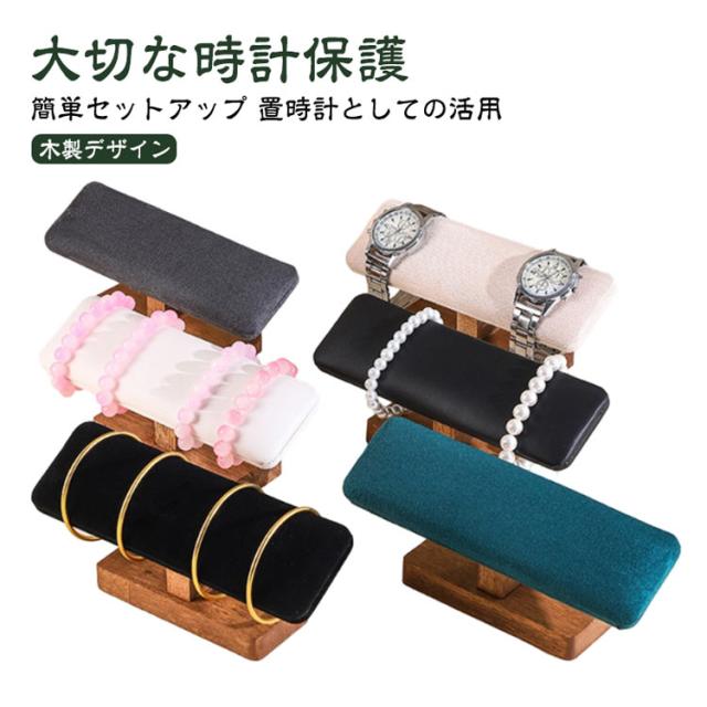 腕時計 スタンド 時計スタンド 卓上 時計置き 展示用 木製 アクセサリー スエード調 腕時計 バングル PUレザー お洒落 ディスプレイスタンド ブレスレット ジュエリースタンド プレゼント ギフト