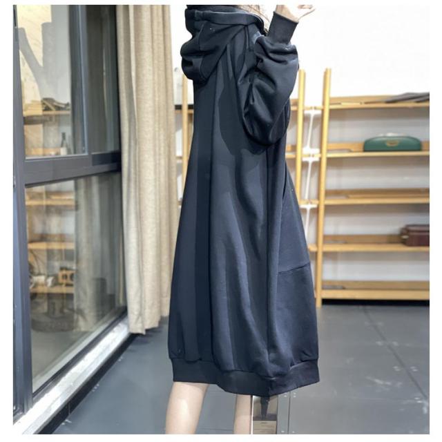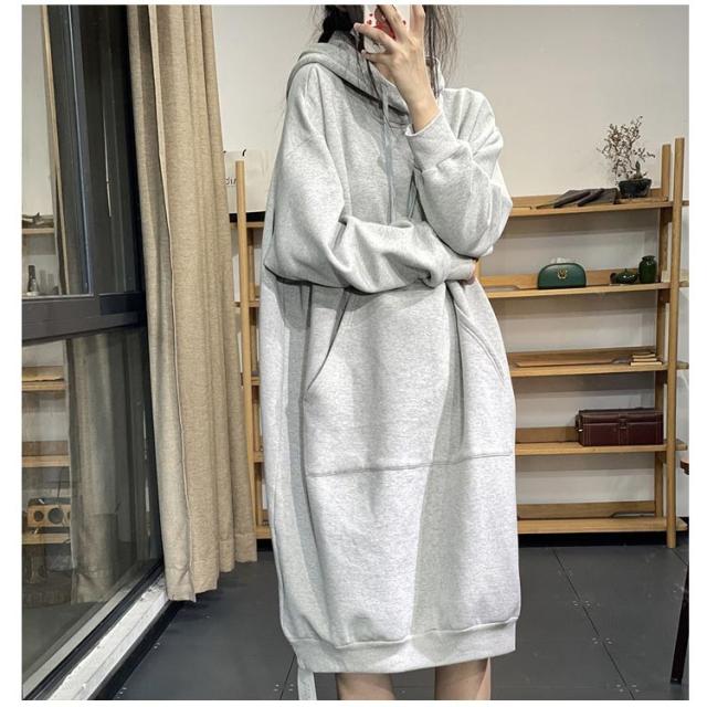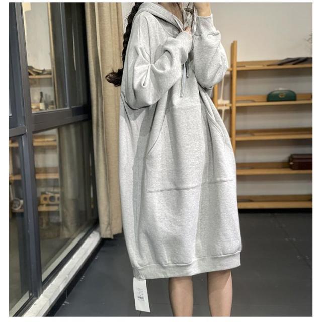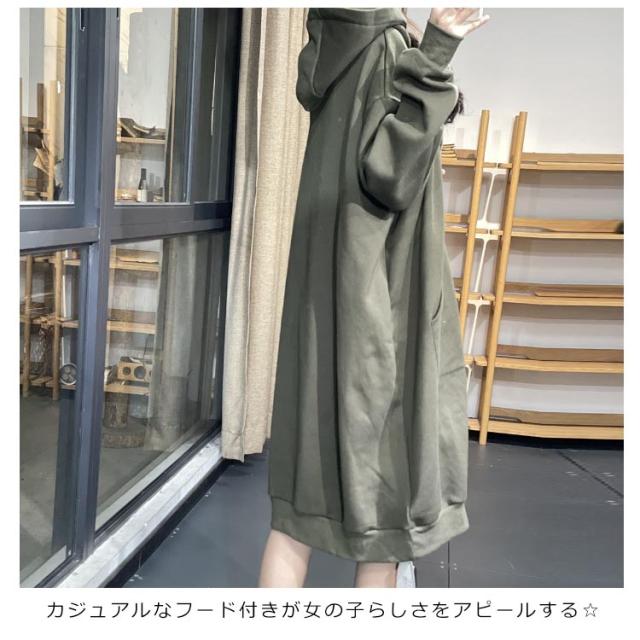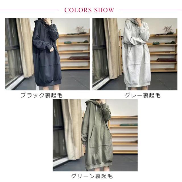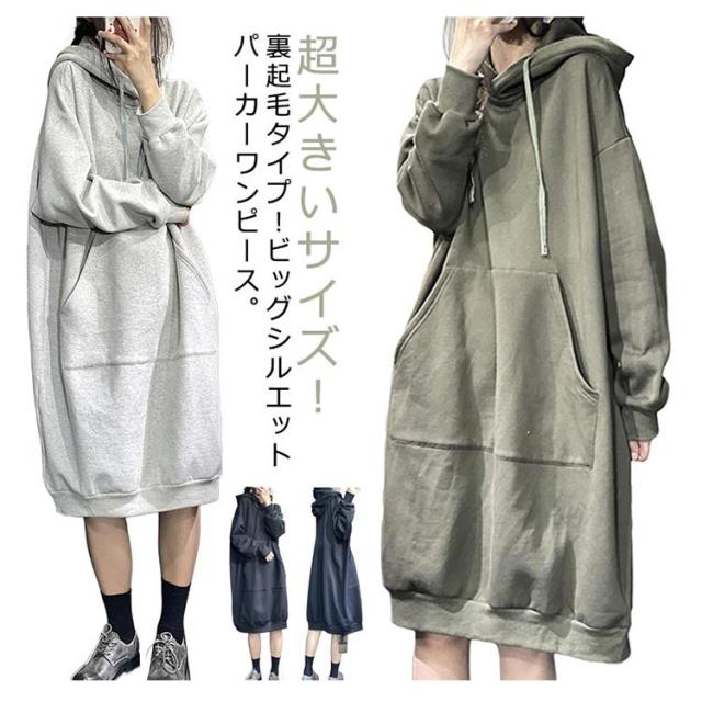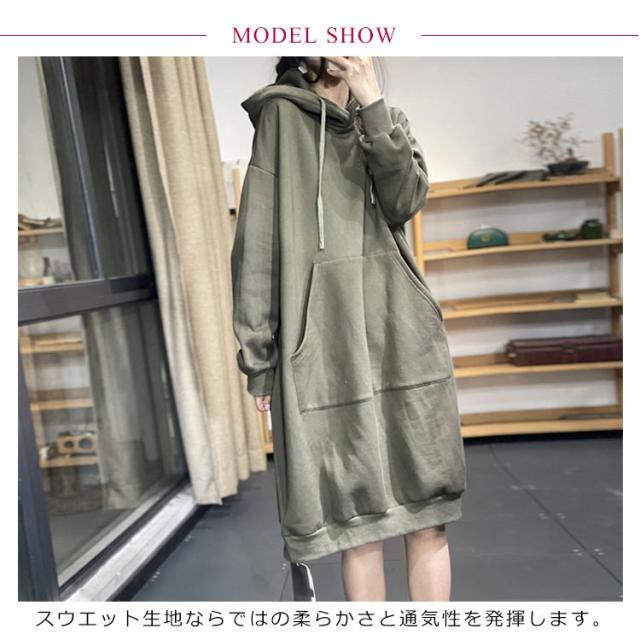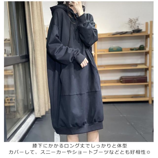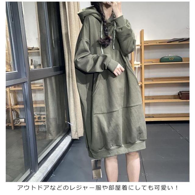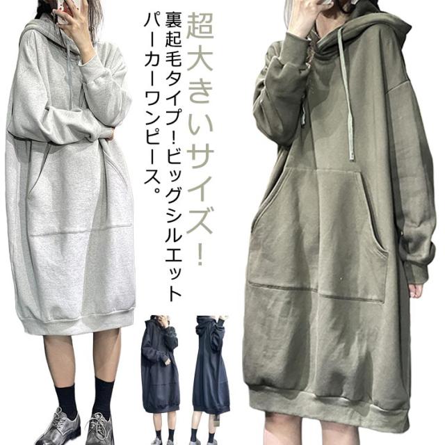 ロング丈 超大きいサイズ ワンピース スウェット 膝下丈 厚手 レディース フード付き プルオーバー 超大きいサイズ 長袖 ロングパーカー ワンピ パーカーワンピース あったか ワンピース スウェット トレーナー パーカワンピ 厚手 無地 防寒 ゆったり ビッグシルエット 着痩せ