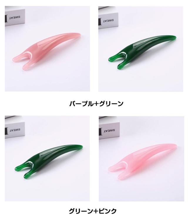 | 【2個セット】 【目もと・鼻筋・頭皮】 手馴染みがよく握りやすいツボ押しマッサージ用かっさ棒です。 2つの突起部分は、鼻のマッサージに使用します 女性の顔にピッタリサイズ ゆっくりと体全体を経路(血管や神経)に沿って、やさしく擦り流しマッサージします。身体の経絡、つぼを 意識しながら 擦り流すことにより、体内に蓄積された老廃物を排出し、気血の流れを整えます。 特殊な突起がやさしく刺激&心地いい 頭皮・目もとフェイスラインなどにフェイス&ボディにも使える | |