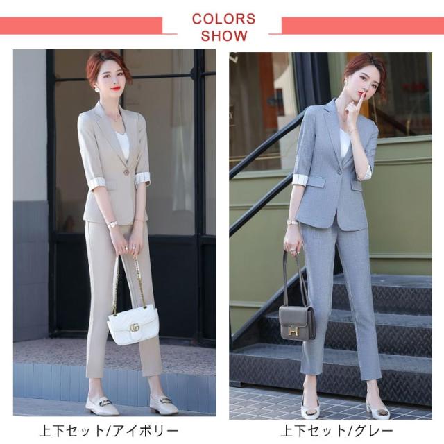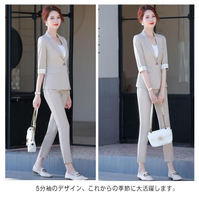 ビジネススーツ お宮参り スーツ スーツ 韓国ファッション 上下セット パンツ 母の日 レディース オフィスカジュア おしゃれ 五分袖 ビジネス フォーマル ママスーツ スリム 20代 30代 40代 50代 プレゼント
