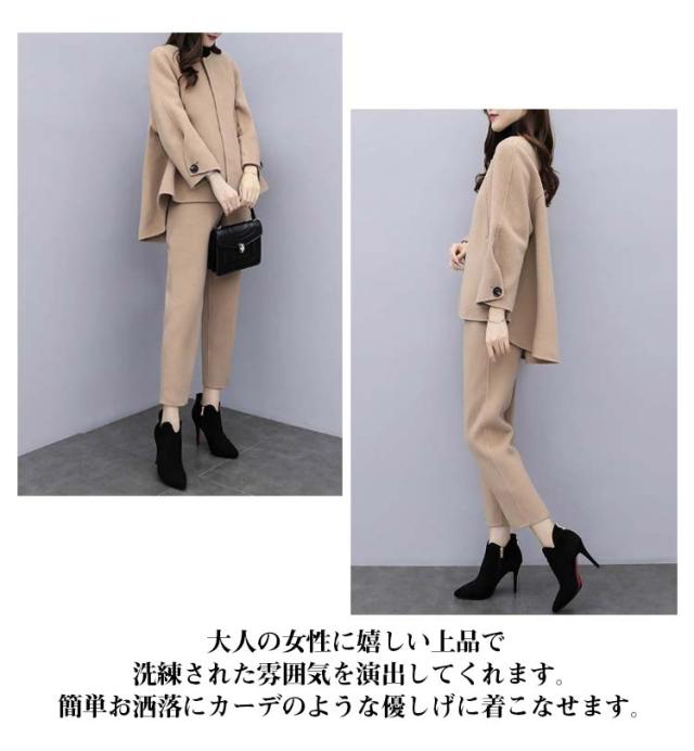 | 1セットで手軽に上級大人コーデが仕上がるコートとワイドパンツのセットアップが登場。 大人の女性に嬉しい上品で洗練された雰囲気を演出してくれます。簡単お洒落にカーデのような優しげに着こなせます。 首元は優しいラウンドネックになったトップスは、首周りをキレイに魅せます。フロント前ボタンは開閉して機能的に着用でき、シンプルなデザインのアクセントにもなっています。 セットのワイドパンツは裾にラインを付け足元にも抜け感をプラスしています。歩くたび目を引くディテール。タック入りで気になる腰回りをスッキリと見せ機能性を兼ねそろえた嬉しいサイドポケット付きです。ワイドなストレートラインで美脚効果も抜群です。 20代、30代、40代、50代と多くの方におすすめな上下セット、1セットあれば幅広く使えます。普段使いはもちろん、入学式・入園式、卒業式・卒園式など様々なシーンでおすすめなセットアップです。 | |