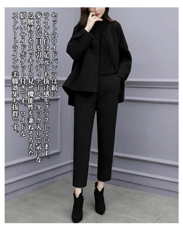 入園式 ママスーツ 卒業式 入学式 服 母 ママスーツ 上下セット パンツスーツ 春秋 ノーカラー セットアップ 体型カバー ジャケット 母親 ママコーデ セレモニースーツ 大きいサイズ レディース 春 秋 冬