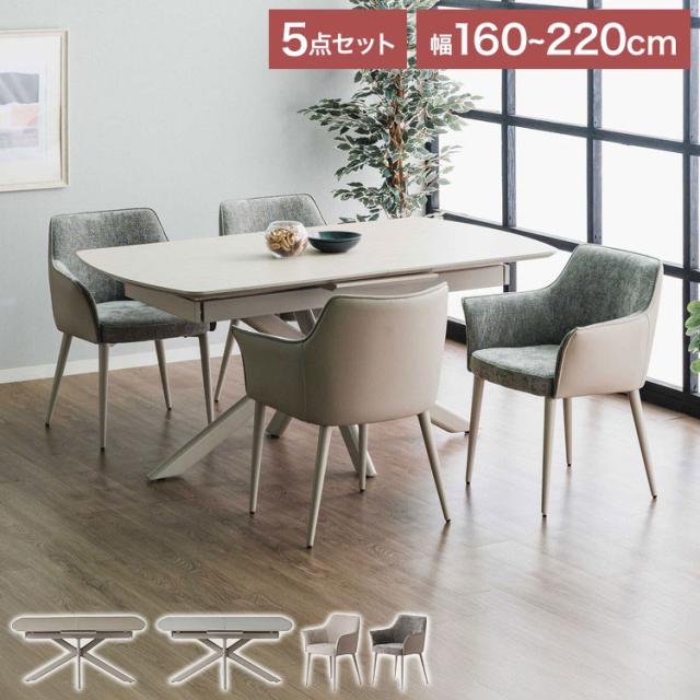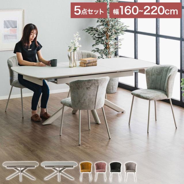 ダイニングセット ダイニングテーブル セラミック 高圧メラミン エクステンション 幅160~220 4人掛け ファブリック ダイニングチェア 4個入り 北欧 おしゃれ 伸長式 ダイニングテーブル リビ