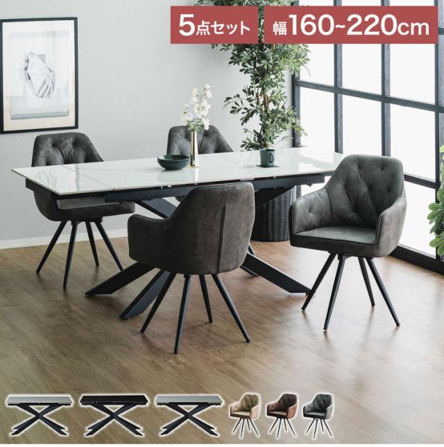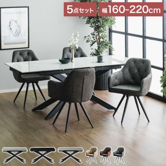 ダイニングセット ダイニングテーブル セラミック エクステンション 幅160~220 ×奥行90×高さ72cm 4人掛け ラウンド ダイニングチェア 4個入り ファブリック 北欧 おしゃれ 伸長式 リビング 伸縮