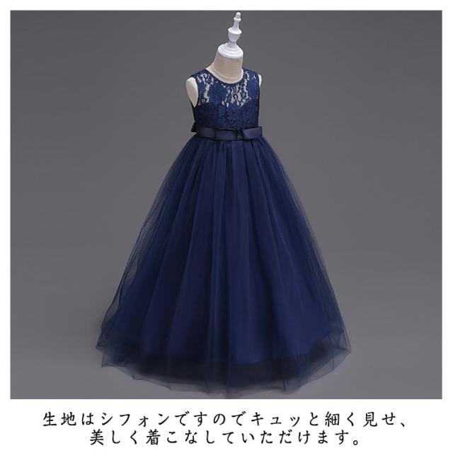 子供ドレス 子供ドレス ワンピース 子供 ドレス 子どもドレス ロング 子どもドレス 七五三 ピアノ発表会 ジュニアドレス ブルー 140 レース 刺繍と柔らかいチュールの広がりが可愛い フォーマルドレス 120 130 ネイビー 150 160
