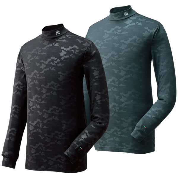 裏起毛エンボス総柄ハイネック 同サイズ2色組 迷彩柄 スポーツウェア アウトドア インナー メンズ 秋冬春 958301