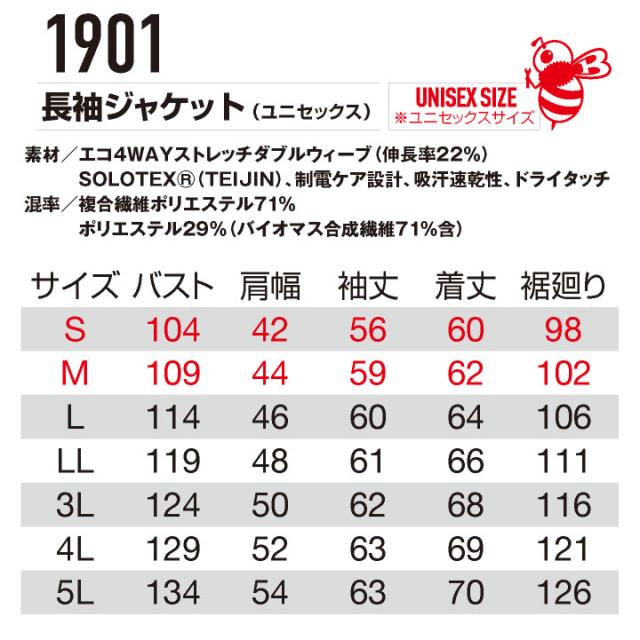 1901 バートル 長袖ジャケット 春夏 秋冬 工事現場 建設業 農作業 ガーデニング アウトドア おすすめ 制服 人気 ネイビー ブラック ストームグレー アッシュグレー