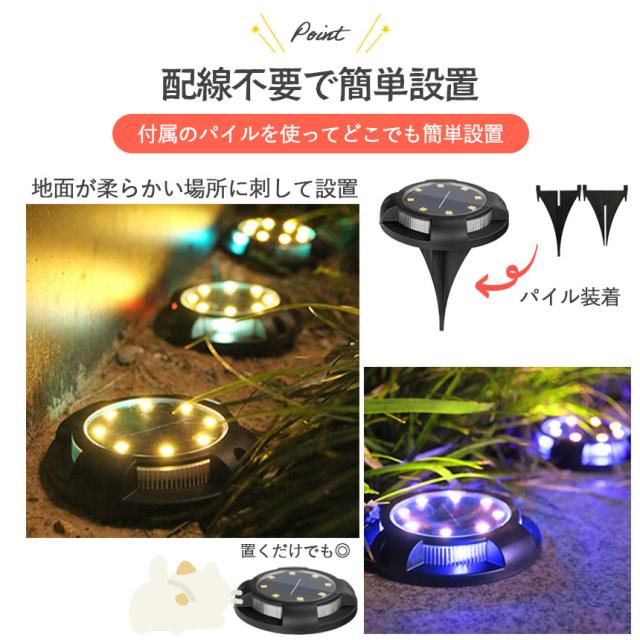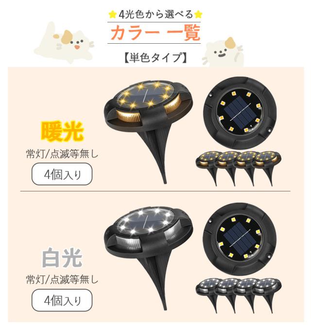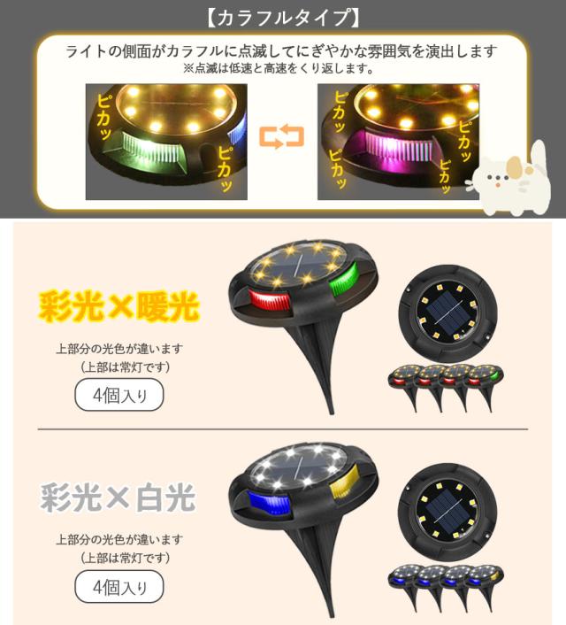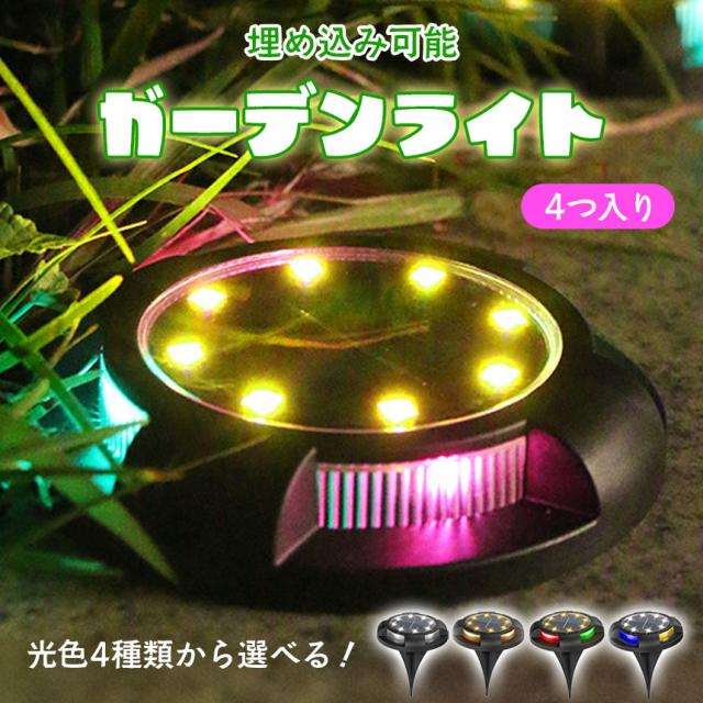 ガーデンライト ソーラー 充電 ソーラーライト センサーライト 4個入り 電球色 暖光 白光 彩光 アウトドア ソーラー 暗闇センサー 照明 イルミネーション IP65 防水 防犯 屋外 ネジ付き LEDソーラーライト 埋め込み おしゃれ ライト ガーデン 外灯 LEDライト