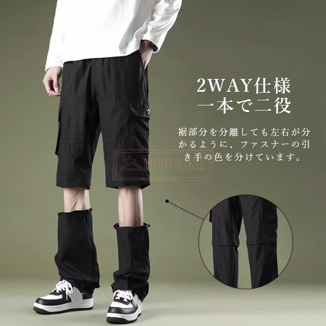 最安挑戦 冬新作 送料無料 新作 カーゴパンツ メンズ トレッキングパンツ ロング丈 ハーフ丈 2way ズボン 脱着可能 ロングパンツ ハーフパンツ 撥水 防風 作業ズボン 作業着 伸縮性 アウトドアパンツ ジョガーパンツ 春秋