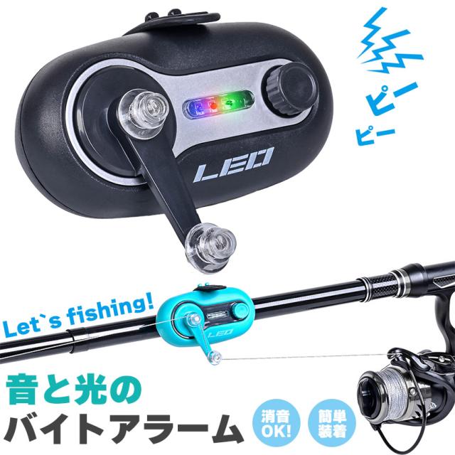 光と音でアタリをお知らせ!◎簡単装着バイトアラーム◎【取り付け簡単】ロッドに腕時計のように取り付けるだけ!シリコンで伸びるのと、穴数も多いので様々な竿に対応しています。簡単なのに、今までの竿先装着ではいろいろ弊害があったものとはわけが違います。