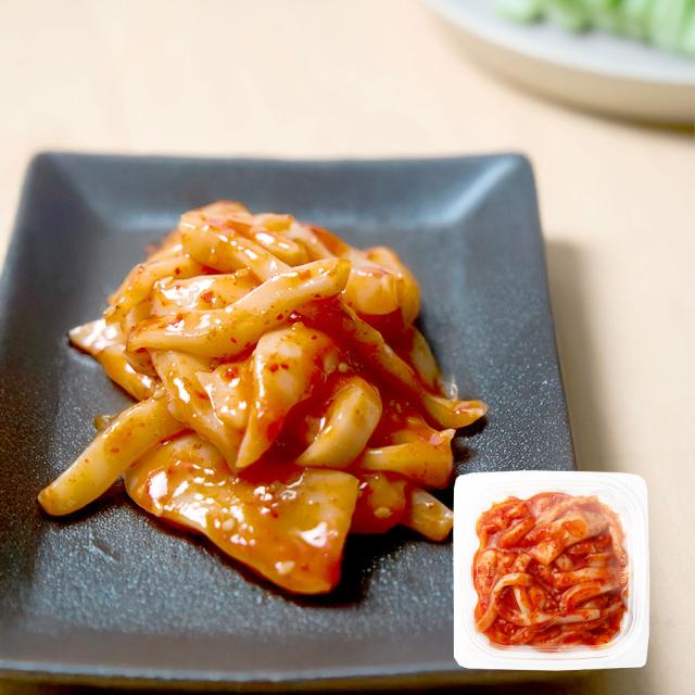 甲いかを魚醤の旨味とコクが特徴のタレに和えピリ辛味に仕上げました。お酒のおつまみにぴったりです。