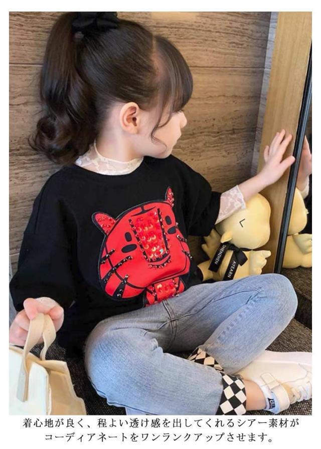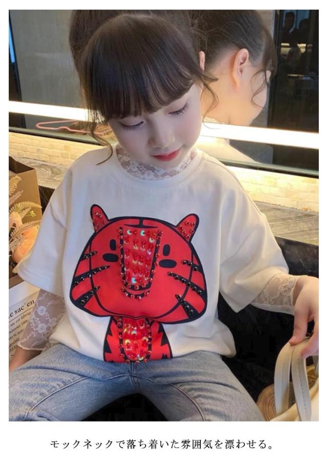 シアートップス 花柄 重ね着 レーストップス インナーTシャツ シースルートップス 長袖 カットソー 女の子 日焼け止め シースルー チュール キッズ レイヤード 透け感 送料無料 キレイめ 華やか 可愛い おしゃれ 90〜150cm