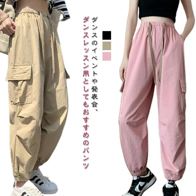 カジュアル ダンス 衣装 ブラック 黒 韓国 ストリート カーゴパンツ 練習着 大人 ダウンス レディース カーゴパンツ ズンバウェア ゆるめ ルーズ ズボン ボトムス ゆったり