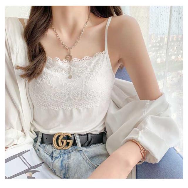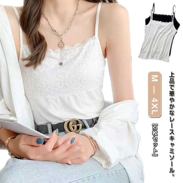 キャミソール 細ストラップ レースキャミソール レース ストレッチ カップなし インナーウェア レースキャミ 胸元レース 2枚セット 肌着 スクエアネック かわいい 伸縮性 レディース インナー 下着