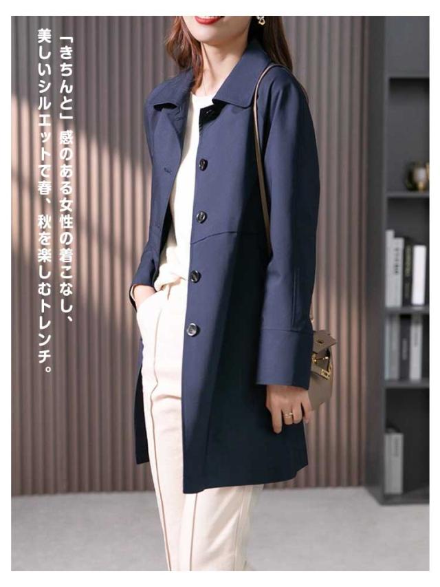 | 定番デザインのすっきりとしたトレンチコート。 「きちんと」感のある女性の着こなし、美しいシルエットで春、秋を楽しむトレンチ。 季節の変わり目に活躍する羽織りものとしても便利です。 幅広いアイテムと相性が良いのでお好みのコーディネートを組んで楽しめます。 普段使いやオフィス着はもちろん、ちょっとしたお出かけやデートでも着れるので様々なシーンでお使い頂けます。 | |