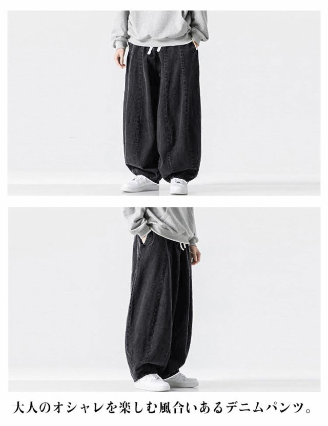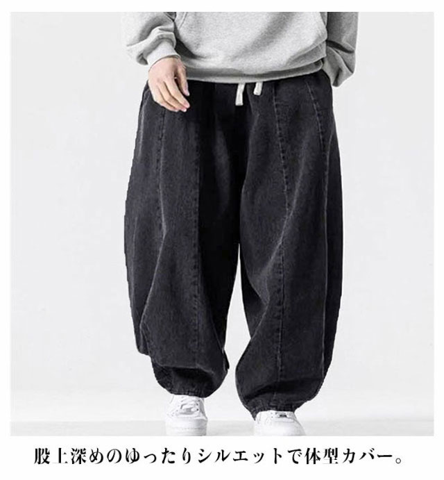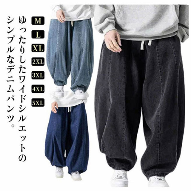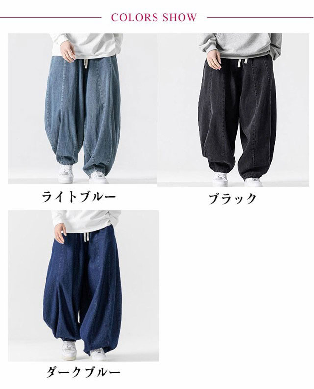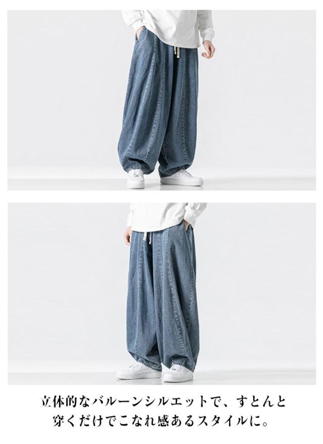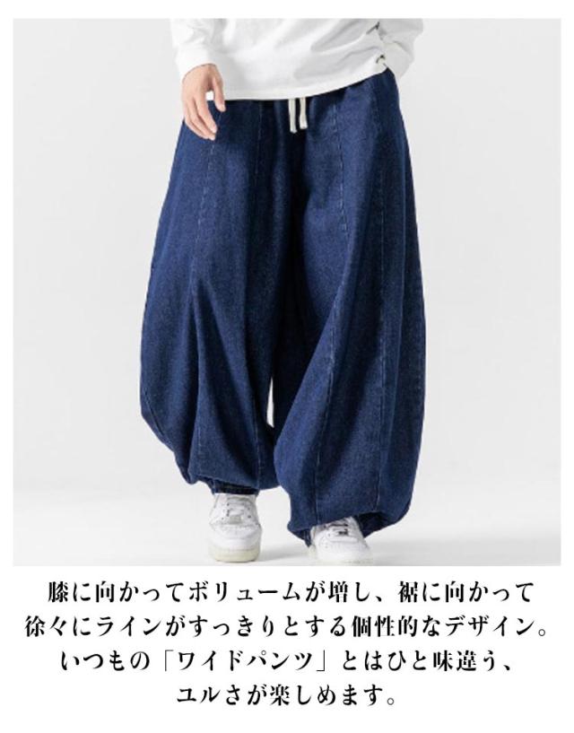 パンツ サルエルパンツ デニムパンツ 秋 メンズ 春 イージーパンツ 夏 デニム ワイドパンツ ゆったり ルーズ ワイド ジーパン ジーンズ 袴パンツ デニムサルエル Gパン 大きいサイズ ポケット付き デニム ブルー ストリート カジュアル バルーンパンツ
