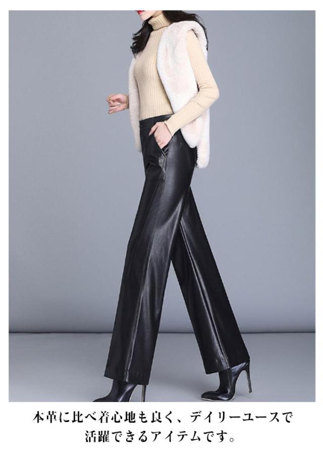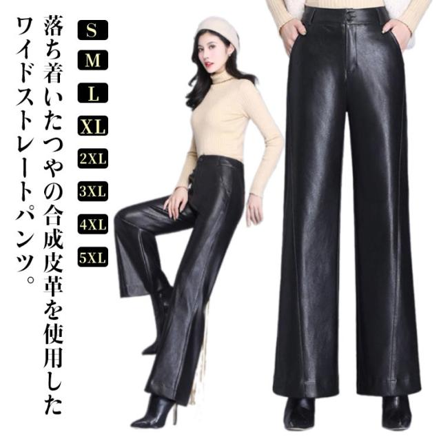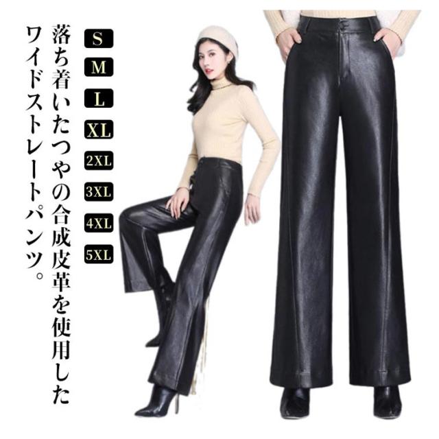 レザーパンツ ワイド ワイドパンツ ガウチョパンツ 秋冬 美脚パンツ 革パンツ 合皮 レザー レディース 春 マット レザーパンツ セミワイド ストレートパンツ ハイウエスト ゆったり ボトムス ロングパンツ 体型カバー 大きサイズ 30代 40代 50代 きれいめ