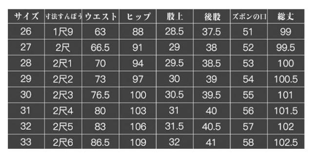 | サイズについての説明 | 26 27 28 29 30 31 32 33 |