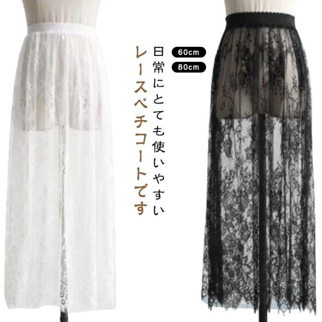 60cm インナースカート 80cm ペチコート インナー レーススカート ドレス ミディアム丈 体型カバー ロング丈 重ね着 レース 重ね着 ペチコート ワンピース インナー ぺチスカート 裾レース 和装 着物 浴衣