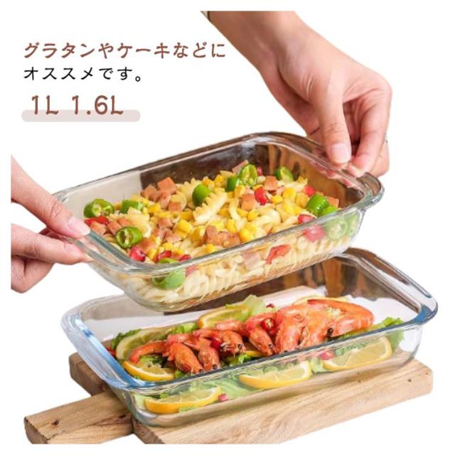 | サイズについての説明 | サイズ:【容量1L】25.8*15.3*4.5cm 耐熱温度:-20〜400℃ 【容量1.6L】29.5*17*5.2cm 耐熱温度:-20〜400℃ ※サイズ計測には誤差が生じます。 |