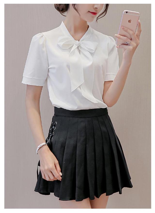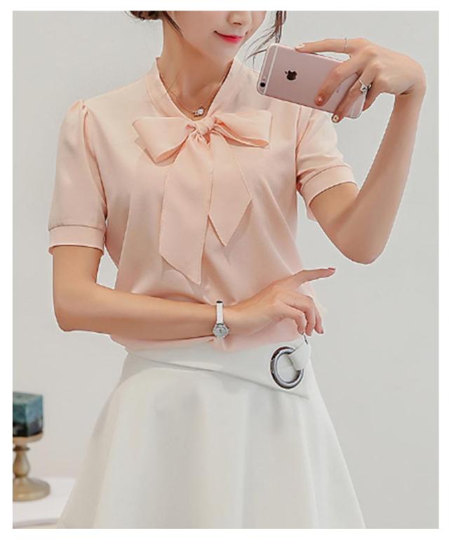 レディース トップス 長袖 ブラウス 半袖 半袖 春 リボン 無地 シャツ ブラウス リボンブラウス リボン シャツブラウス シャツ シフォン シフォンシャツ 可愛い フォーマル