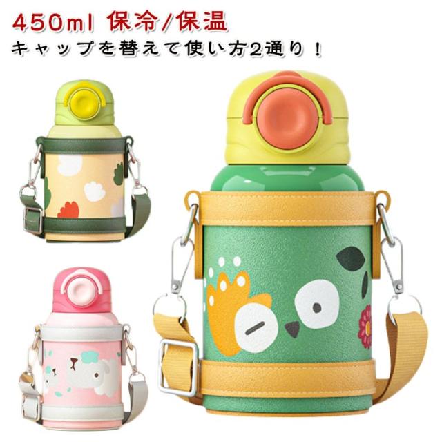 ステンレス 直飲み 水筒 ワンタッチ 2way 子ども ショルダー カバー付き ストロー コップ飲み マグ 保冷 保温 幼児 肩掛け 幼稚園 キッズ 450ml 保育園 女の子 男の子 かわいい おしゃれ 遠足 入園準備