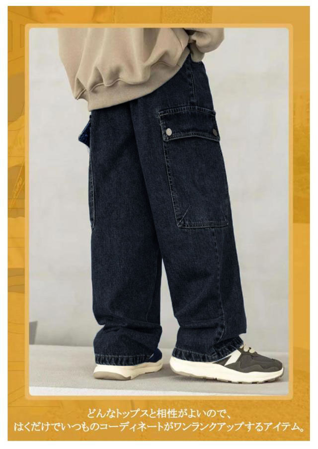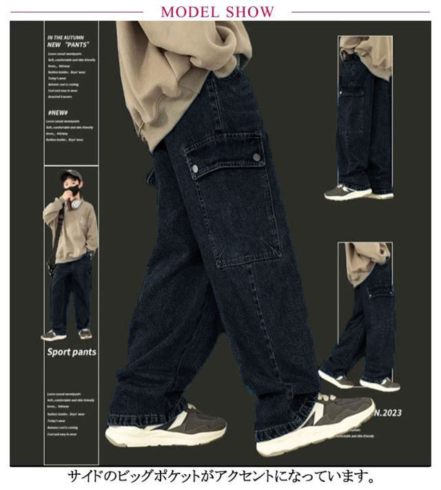| 120-170cm!存在感のあるワイドシルエットのカーゴパンツ。 サイドのビッグポケットがアクセントになっています。 柔らかな肌ざわりが心地良いデニム。程よい厚みなので、春秋にぴったりな素材です。 ウエストがゴム仕様なのでストレスフリーな履き心地です どんなトップスと相性がよいので、はくだけでいつものコーディネートがワンランクアップするアイテム。 | |