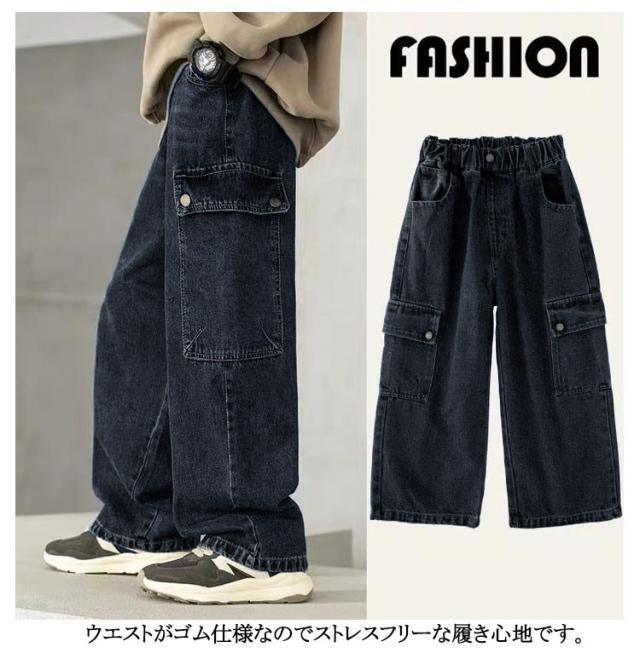 女の子 ロングパンツ ジーンズ ボトムス 子供服 キッズ ストリート ゆったり ワイドパンツ デニムパンツ ジュニア ジーパン 男の子 ウエストゴム かっこいい カジュアル 長ズボン デニムパンツ 通学 通園 120 130 140 150 160